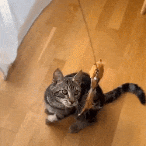 Samonośna podstawa, drut i ptak przymocowany na końcu. Gdy kot łapie i bawi się ptakiem, drut trzepocze, tworząc idealne wrażenie prawdziwego ptaka, co jeszcze bardziej zachęca kota do zabawy i ataku.